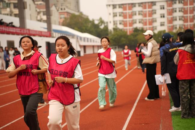 (图为学生们进行800/1000m测试现场 汉口学院学生体育联合会新媒体中心摄)