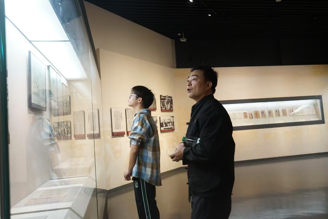 全体师生进入馆内,一幅幅黑白照片、一件件斑驳的实物映入眼帘,展馆内陈列的文物无不诉说着过往的沧桑与荣耀。它们不仅仅是物质的存在,更是精神的象征,见证了一代代共产党人为理想献身的崇高情怀。