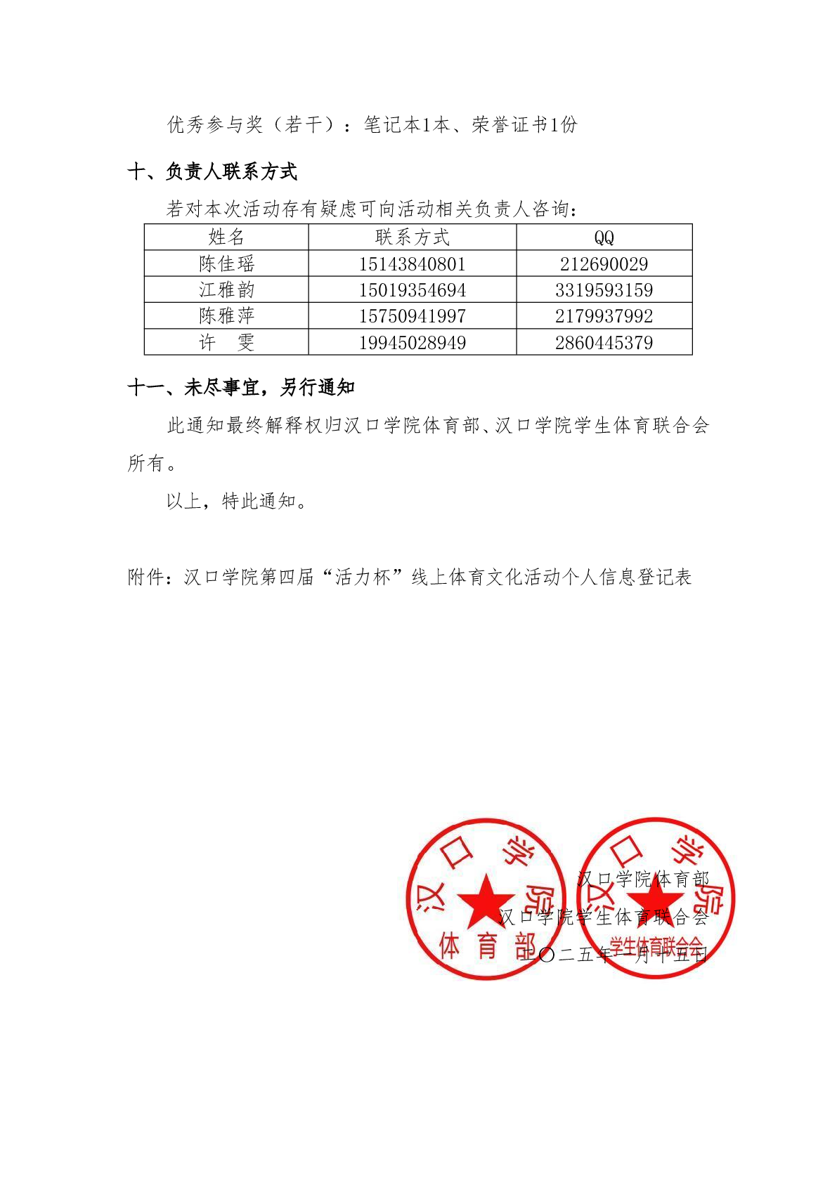 关于举办汉口学院第四届“活力杯”线上体育文化活动的通知
