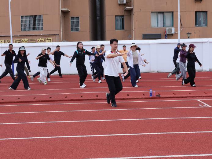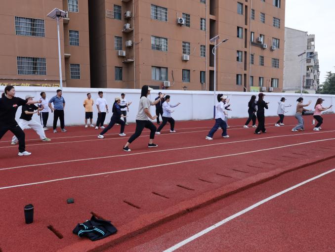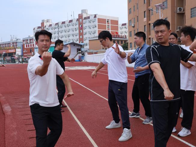 易鹏教授亲身示范,全体教师跟随演练了一套完整的太极拳套路。期间,他逐招逐式地进行精辟剖析,针对每个动作的技术要点与关键环节,均给予了细致入微的专业指导。尤为值得一提的是他将太极拳的教学概括为五个核心要点,一是教师做好备课:提高规范动作要领,做到科学严谨;二是布置教学计划,制定目标:重视教学质量,集体备课规范各招式动作;三是做好生动形象的内涵讲解让学生知其然,知其所以然;四是准备学生层面(好、一般、差)三个层次的太极拳:考核依据学生的差异性因材施教;五是线上线下相结合,多鼓励、多表扬:激发学生对太极拳学习的兴趣,引导学生主动学习。