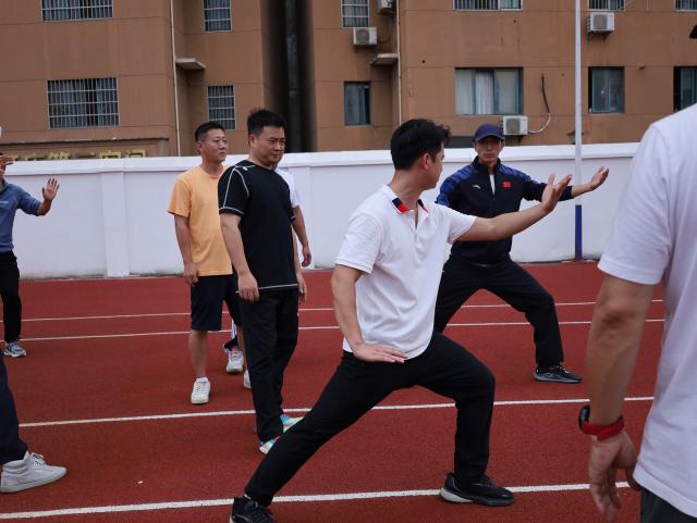 在易鹏教授亲身垂范、细致展演之后,体育部全体教师全身心投入到二十四式太极拳的研习实践之中。练习期间,易鹏教授凭借敏锐的专业眼光,实时洞察并精准纠偏老师们的动作细节,针对高频出现的典型错漏环节,不仅亲自示范标准动作,还结合理论深度剖析,以严苛的标准规范每一个招式的呈现。此外,他特别着重强调了课堂教学中的关键要点,为后续教学工作提供了极具价值的指导方向。