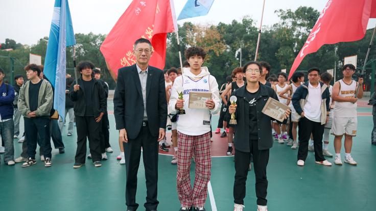 荣获“优秀裁判员”奖项的是:蔡锦程、陈郑励、德拿秋,体育部刘佰一老师为获奖个人颁奖并合影留念