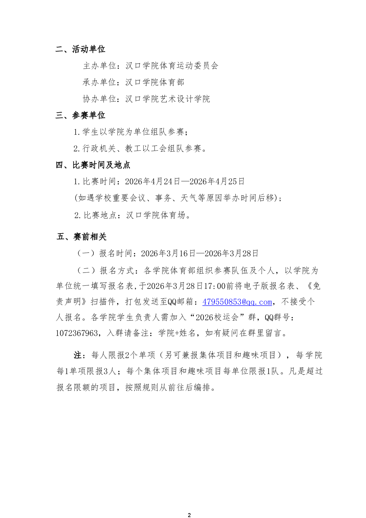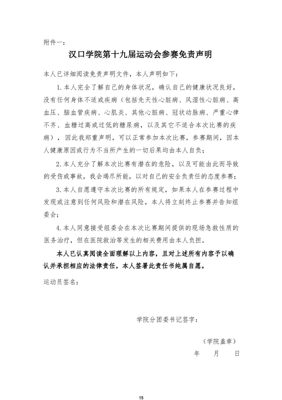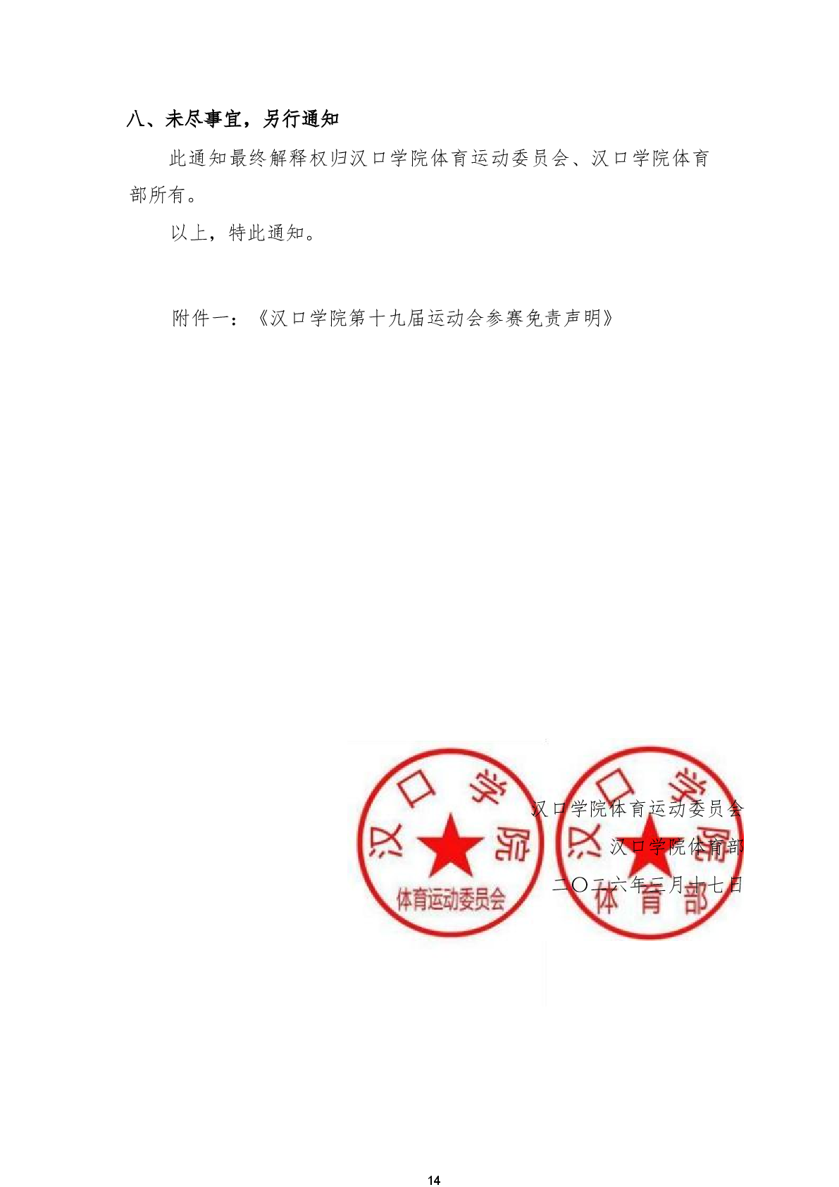 关于举办汉口学院第十九届运动会的通知